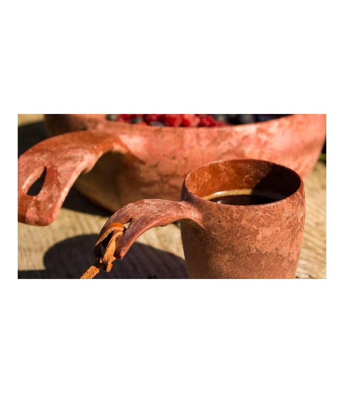 Die kleine KUPILKA 5 Tasse eignet sich perfekt für Epresso oder Likör. Mit der mitgelieferten Kette aus Rentierleder kann die kleine Tasse wie eine Kette um den Hals getragen werden.