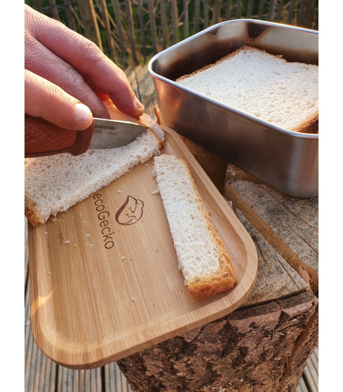 Mit dieser hochwertigen, nachhaltigen und langlebigen Brotdose aus Edelstahl mit Bambusdeckel können Sie Ihre Lebensmittel gesund und natürlich verpacken. Dank eines elastischen Bandes wird Ihr Gemüse, Obst, Brot, Nüsse uvm sicher zur Schule, ins Büro oder bei Wanderungen und zum Picknick transportiert. Das Bambusbrett kann auch als Schneidbrett genutzt werden.
