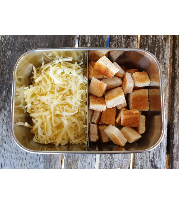 Brotdose Edelstahl 800 ml mit Bambusdeckel inkl. herausnehmbarer Trennwand
