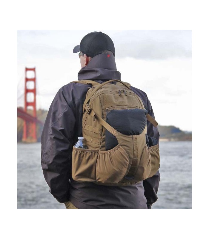 Vielseitiger Rucksack: als EDC, für draußen auf Wanderungen und Touren, bis hin zu Airsoft, Urbex, und für den taktischen Gebrauch. Beim Design dieses Rucksack stand die schnelle Zugänglichkeit wichtigster Ausrüstungsteile im Mittelpunkt. Das Hauptfach ist mit Flausch ausgekleidet, und kann somit Gegenstände mit dem Helikon Versatile Insert System® aufnehmen. Ebenso befinden sich im inneren eine Tasche mit elastischem Bund und eine Reißverschlusstasche. Im oberen Teil des Rucksacks befindet sich eine Organizertasche welche man erreichen kann ohne das Hauptfach zu öffnen. Vorne befindet sich eine weich gefütterte Tasche für (Sonnen)brillen und empfindliche Elektronik. Zwei offene Seitentaschen für Waserflaschen oder andere Gegenstände befinden sich an der Seite des Rucksacks. Die Front ist mit einem sogenannten Beaver tail panel ausgestattet, welches nicht nur Helme aller Art, sondern auch Jacken und andere Gegenstände aufnimmt. Wenn das Panel nicht benutzt wird kann es einfach zusammengerollt werden, so dass es nicht stört. Der Rucksack hat ein festes Rückenpanel, gepolsterte Schultergurte, sowie einen Hüftgurt.
