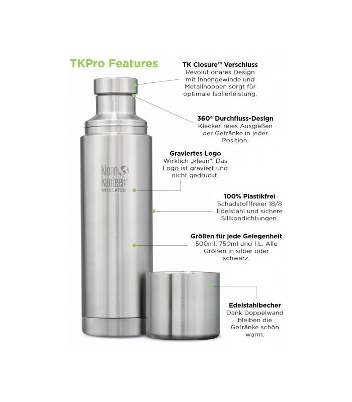 Die Weltneuheit von Klean Kanteen - die TKPro ist die erste Isolierflasche komplett ohne Plastik! Dafür hat die TKPro den ISPO Award in der Kategorie Outdoor gewonnen. Diese einzigartigen Isolierkannen zeichnen sich u.a. durch die Climate Lock™ Doppelwand-Vakuumisolierung im Korpus und im Edelstahlbecher aus. Dadurch bleiben die eingefüllten Getränke stundenlang heiß oder kalt.